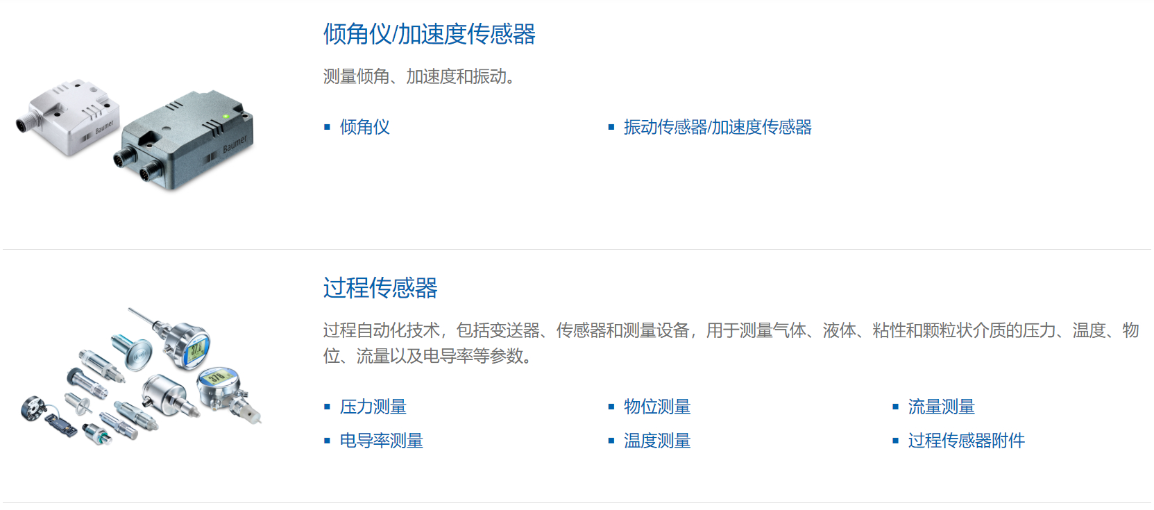 Baumer 堡盟 傳感器 產品分類
